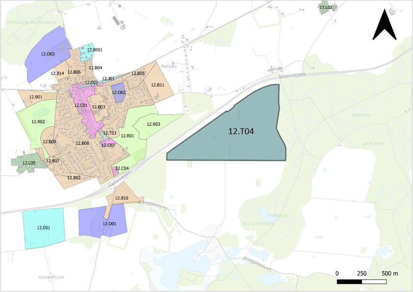 Der udlægges med dette kommuneplantillæg et nyt rammeområde nr. 12.T04, som vist på kortet neden for, og med følgende rammebestemmelser:
